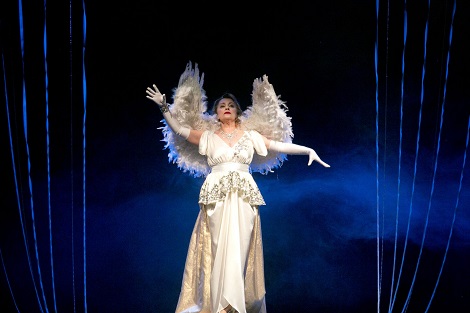 Dolenčić je međutim izbjegao takvo smanjenje broja glumaca i zadržao središnje mjesto nastupa u Carnegie Hallu, pokazavši iznimnu redateljsku inventivnost u oblikovanju te scene u okviru skromnije produkcije. Oslonivši se na povijesnu činjenicu da su (posebice u SAD-u) gotovo svi važni događaji negdje od tridesetih do pedesetih godina prošlog stoljeća prenošeni širokoj publici putem radija, Dolenčić taj najvažniji događaj u protagonističinom životu prezentira tako da ona prije izlaska na scenu dolazi pokazati svoj anđeoski kostim koji je sama kreirala prijateljima, koji potom izvedbu prate radioprijenosom kojem sugestivnost daje i vrsna glasovna interpretacija Olivera Mlakara, ali i kreiranje atmosfere i zvukova majstora tona Marka Vodeničara. Taj se prijenos nastavlja i nakon završetka koncerta, opisom reakcija i situacijom izvan zgrade (ispred koje je ostalo dvije tisuće ljudi koji nisu uspjeli doći do ulaznica), tako da se slavlju stižu priključiti i Forence i Cosmé. U tom se posebnom ozračju dodatno otkrivaju komplicirani odnosi među licima koja su kod Dolenčića kompleksnija no u Quilterovom (s pravom u ovakvoj koncepciji kraćenom) tekstu. To je i po preciznosti igre i njenoj mnogoznačnosti pandan prvom vrhuncu predstave u uvodnoj sceni u kojoj se uspostavljaju svi odnosi.I u jednom i u drugom prizoru Anja Šovagović uspijeva fascinantno oblikovati Florence - ne samo impresivnim kreštanjem opsjednute netalentirane osobe bez glasa i sluha nego i kao toplo, drago ljudsko biće koja je spremno dio svog bogatstva podijeliti s onima koji će podržavati njezinu iluziju o iznimnoj vrijednosti njenog pjevanja. Quilter je tu simpatičnu ljudsku crtu ugradio u lik Florence ponajviše da ne bi bilo očito kako i njegova komedija teži privući publiku istim, etički zasigurno dvojbenim načinom kojim je stvarna Florence pridobijala pozornost gledatelja – uživanjem u izrugivanju drugačijih i osjećanju vlastite nadmoći nad njima i njihovom ograničenošću, pojačanima i svojevrsnim osjećajem zadovoljenja neke imaginarne pravde time što niti svemogući novac ne može pomoći u stvaranju prave sreće i moći.