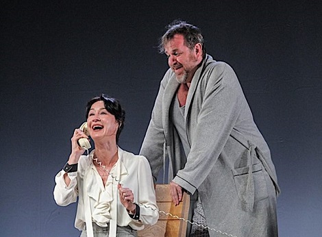 Maria Ștefănescu, predstava Prizori iz bračnog životaKomorna drama Emigranti govori o boravku dvojice poljskih emigranata u maloj sobici u Parizu, gdje čekaju nekakvu promjenu koja ne dolazi. Vrijeme kao da stoji, a raste samo stres i pritisak koji izbija u dojmljivoj sceni kad obojica na stolu plešu Grka Zorbu. Redatelj je svjesno smanjio svoj utjecaj na minimum, prepustivši dvojcu Ioanu Paraschivu i Alexandru Malaicuu scenu i oni su u potpunosti iskoristili priliku pokazavši širok dijapazon glumačke vještine koji je vjerno prenosio sav očaj upisan u psihologizaciji njihovih karaktera.