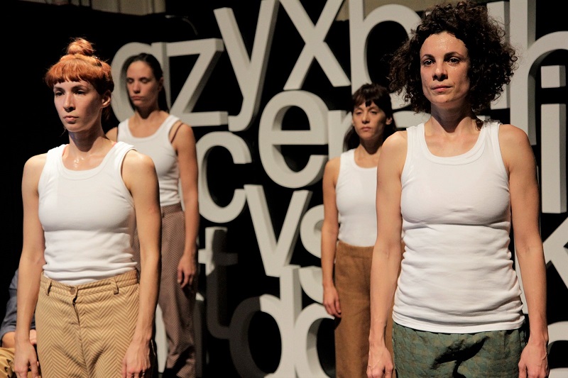 U drugome dijelu predstave glumice i plesačice oslanjaju se na jezik, odnosno iskorištavaju slova kako bi svojim tijelima i rekvizitima ispisale riječi. Jezično-vizualna instalacija na zidu orkestralne rupe preuzeta je iz performansa Opla stick: muka po Paolu Scheggiju, a ova je rekonstrukcija poznatog i viđenog u novom ruhu prilika za promišljanje odnosa jezika, politike, postmodernizma i performansa. U trećem je dijelu zanimljiva i interakcija umjetnica s publikom, pri čemu su neke izravno upućivale publiku na listanje partitura koje su bile popratan sadržaj uz aktualna događanja na sceni, a čime je i publika postala dio predstave. S vremenom je i izvedba izašla iz kriptičnosti isključivo scenskog pokreta i preselila se u domenu govora te su umjetnice, ponajprije Aleksandra Stojaković Olenjuk i Ivna Bruck, na dvama jezicima vodile publiku kroz radnje kako bi izravno i fizički postala dijelom performansa. Pritom su izravno upućivale na prirodne katastrofe i klimatske promjene koje je čovjek sam uzrokovao svojim nemarom, a publika je nakon predstave svakako dobila povod za razmišljanje.