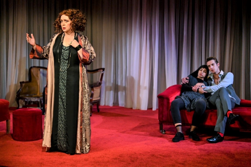 Njegov antipod, Adam Karla Mrkše također je pojava stalno na rubu karikature, svojevrsni Puba Fabriczy za postmoderno doba, a Mrkša ga igra nadahnuto duhovito, ne upadajući u pretjerivanja koja bi se lako mogla dogoditi. Deprah Maruške Aras uspjela je u portretiranju mlade, slobodne žene čija je osnova ponašanja misliti vlastitom glavom, a ne pokoravati se navodnim autoritetima. Ujedno je, uz Adama, i najjasniji izdanak teatra apsurda u glumačkoj cjelini. Rea Hane Hegedušić je konvencionalna pobunjenica, koja za sebe misli kako je nekonvencionalna i drukčija. Ujedno je i njezina kreacija nekako najprigušenija, najmanje dolazi do izražaja u cjelini drame. Svi su likovi pomalo karikature, pomalo arhetipovi, no te se njihove karakteristike koriste vješto i opravdano.