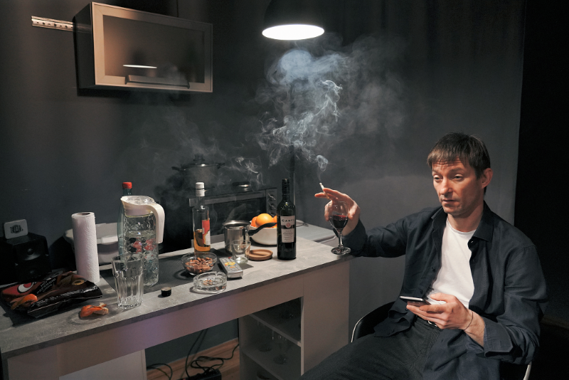 Njegova usamljenost, anksioznost i psihološka rastrojenost, koje - kako predstava napreduje, preuzimaju sve snažnije i drastičnije oblike, pretvarajući se u pijanstvo i na kraju samoubojstvo, nisu dakle rezultat samo okolnosti i životnih nedaća koje su pogodile protagonista Tihe noći. On je, naprotiv, aktivni činilac, ma kako to paradoksalno moglo zvučati i izgledati. On aktivno pridonosi svom stanju, čineći ga još više bez izgleda i mogućnosti izlaska iz apatije, gubitka bliskosti te (božićne) kulminacije time izazvane nesreće. Berkoffova drama tako samo potvrđuje u umjetnosti, a još više u životu kao trajnom području umjetničkog nadahnuća, opetovanu iskustvenu prispodobu o čovjeku kao temeljnom činiocu vlastite psihološke (ne)sreće, vlastite zbilje koja je vrlo često sumorna, no djelovanjem toga koji svoju životnu sumornost spoznaje, postaje još gora, umjesto da aktivnošću i voljom za životom stanje bude promijenjeno na bolje. Dakako, Tiha noć nije nikakva literatura za samopomoć ni božićna prigodnica, kamilica u kojoj će sve na kraju izaći na dobro, čiji će sretan kraj potvrditi publici onaj osjećaj afirmacije kolektivne slike o božićnoj atmosferi tako svojstven brojnim djelima iz božićnog žanra – mi smo bolji od njega (njih), ali i za njega ima nade, sve će se na kraju završiti dobro i božićni će duh zajedništva, blizine i radosti sve nadvladati. Ne, ova je predstava drastična i nedvosmislena u svom naturalizmu, u prikazivanju posljedica društvene apatije i socijalne nebrige koja postaje osobna apatija i osobna nebriga te kulminira u ultimativnom anti-božićnom činu, samoubojstvu u trenutku koji slavi toplinu, bliskost i ponajviše život, rođenje. Stoga zahtijeva i snažnog, uvjerenog i uvjerljivog glumca za svoju glavnu i jedinu ulogu.