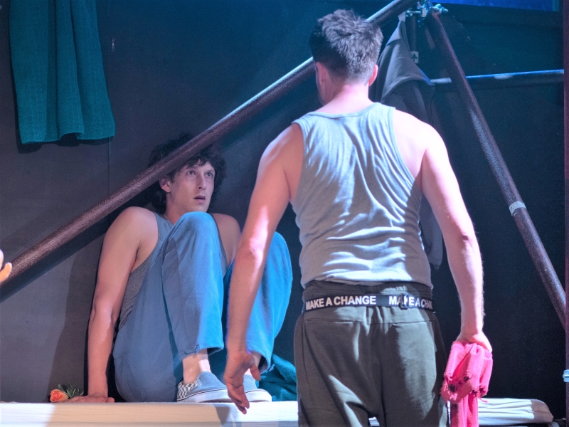 Doris Šarić Kukuljica standardno zrači posebnom energijom te se doima kao da bez previše truda apsolutno dominira izvedbom. Izvrsno utjelovljuje ženu zabrinutu za psihičko stanje svojeg supruga u apokalipsi, ali i majku u brizi za sinov život i sreću. Brižna i prepuna nježne ljubavi prema dvama muškarcima u svom životu izravno je suprotstavljena liku Svena Jakira koji tumači grubog ljubavnika. Njegov toksični maskulinitet i agresivni istupi unose nemir u druge likove, no Svenu Jakiru u toj je ulozi ipak nedostajalo malo gorčine kako bi njegova gluma bila u potpunosti uvjerljiva. Njegov lik duboko je frustriran i ima česte izljeve bijesa, lako ga se naljuti i onda plane, no njegova se teška narav, osim u decibelima, jedva nazirala u izvedbi. Nedostajalo joj je punokrvnosti kojom bi postala gotovo opipljiva, a time i energičnija, no u svakom slučaju u obzir se moraju uzeti i teške okolnosti u kojima je predstava odigrana.