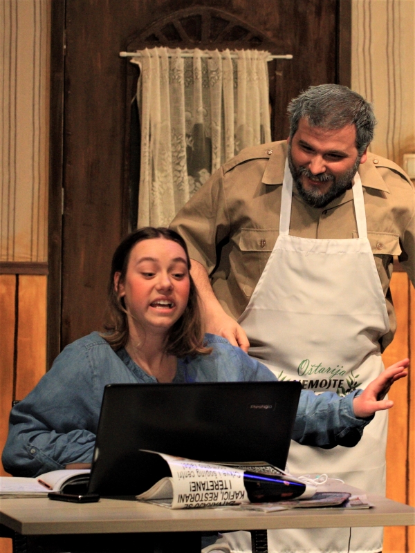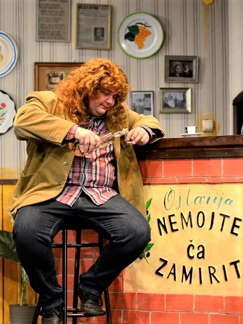 Likovi su živopisni i pomalo iskarikirani, ali s mjerom, u svrhu postizanja komike. Sjajan Majkl Mikolić koji igra gazdu ujedno je i režiser predstave, a glumom se posebno iskazao Luka Juričić koji sjajno skače iz uloge u ulogu, pa je tako utjelovio pjevača Gina, mladoženju Luigija i načelnika Stožera Capu. Uz bok mu ide i izvrsna Katja Rabar koja se odlično snašla u ulozi mladenke Silvane koja će napraviti sve da se vjenčanje u konačnici održi, pa tako i svoga zaručnika iz Italije dopremiti u mrtvačkom sanduku. Ujedno igra i Bosanku Hanu. I ostali su mladi glumci briljirali u svojim ulogama i bili na visini zadatka te pokazali da jednako uspješno mogu igrati i u predstavama večernje scene, kao i u onim dječjim.Scenografija je vrlo upečatljiva i zorno dočarava tipičnu starinsku oštariju, a poigrali su se i s istarskim običajima poput ispijanja rakije, jedenja pršuta te pričanja „po istrijanski“.