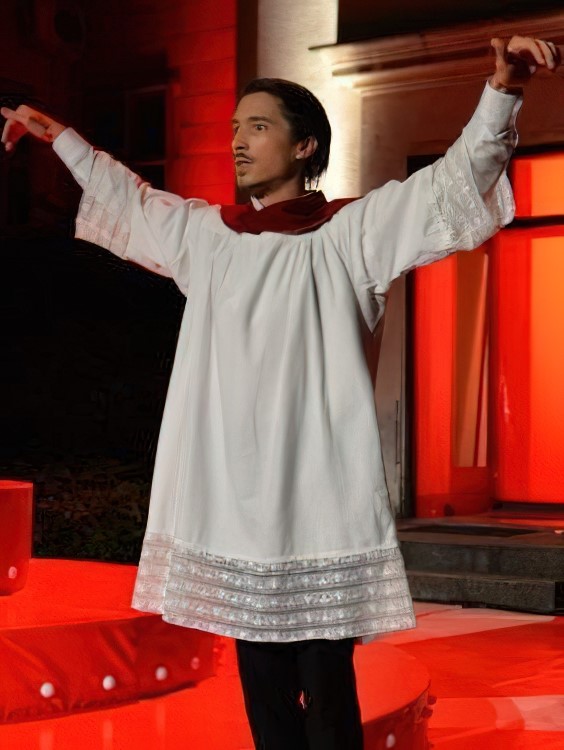 U središtu pozornice je element crvene boje koji asocira na cirkus, a u nekoliko situacija i služi za izvođenje cirkuskih točaka. S dvije strane je po nekoliko stolaca, od kojih oni lijevo služe vrsnim glazbenicima Luciji Barišić i Matiji Antoliću kojima se efektno pridružuje i Siniša Ružić koji u predstavi ima i iznimno uspjele glumačke epizode, dok sjedala s desne strane uglavnom zauzimaju glumci koji ne sudjeluju u prizoru koji se tog trenutka odvija. Sve to smješteno je u velik prostor koji zahvaljujući sakralnim motivima na nadsvođenim prozorima djeluje kao crkva. Suprotnosti a i sličnost religije i cirkusa, koji ukazuju i na svakodnevicu i na predstavljačku umjetnost, potenciraju i uspjeli kostimi Nine Silobrčić i Emilije Šušković Jakopac s također čestom uporabom crvene boje korištene i za cirkuske kostime i svećeničke halje.
