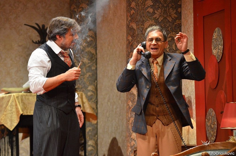 U Komedijinoj premijernoj izvedbi, ipak, to i nije baš ispalo tako te predstava, unatoč tome što joj ritam ne pada, ne izbjegava biti zamorna. Čini se da je problem u glumcima, koji su potrebu za sigurnošću shvatili ponešto pretjerano doslovno. Filip Juričić u ulozi producenta Saundersa od početka do kraja na jednak način pretjeruje, gotovo divlja po sceni. Na stranu to što je karakter lika koji utjelovljuje takav, Juričić ne čini nikakvoga pomaka te to jako brzo postaje naporno na čisto izvedbenoj razini. Damir Lončar kao Tito Mertelli, tenor, ali i Beppo, hotelski poslužitelj glasom i stasom nevjerojatno sličan Mertelliju, slično čini u replikama koje su sve jezično stilizirane na isti način, kao iskvareni, karikaturalni talijanski.