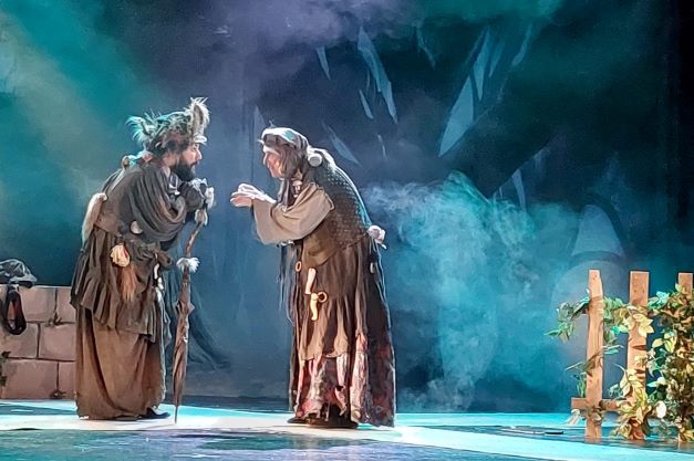 Nova predstava Dječjeg kazališta Dubrava, najavljena kao lutkarska predstava, iako ne mislimo da je to precizna žanrovska odrednica, za djecu 7+ premijerno je izvedena 3. ožujka, a mi smo je pogledali na prvoj reprizi koja nije do kraja ispunila sva gledališna mjesta. Predstava redateljice Ivane Peroš inspirirana je pričama iz bogate hrvatske narodne predaje, a nastala je prema knjizi Mjesečeve sjene Zdenka Bašića koji je i dramatizirao tekst. Predstava počinje mistično, u polumraku, gotovo filmski intrigantno, iako pomalo nejasno i nerazgovijetno. Scenografija (scenografkinja Vesna Režić, asistentica scenografkinje Nikolina Kuzmić) pokušava ispreplesti mistični i stvarnosni svijet, donekle je funkcionalna, ali podsjeća na realistične predstave nekog drugog stoljeća, sa statičnom drvenom ogradom, plotom za skrivanje desno i zidićem za skrivanje lijevo na sceni. Scenu i kretanje glumaca tako donekle onemogućuju dva statična scenska rješenja, a križanje svjetova o kojemu se stalno govori nije prezentno i jasno domišljeno. Mizanscena je zamišljena plošno, više u lijevo-desnoj orijentaciji, tako da izostaje perspektiva i treća dimenzija, planovi koje je moguće postići i na tako maloj, ali lijepoj i za manje predstave funkcionalnoj pozornici. Kazališni kodovi pomalo su nedorečeni.