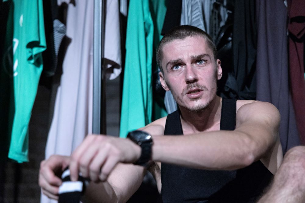 Velika scena Zagrebačkoga kazališta mladih u Šeparovićevoj zamisli postaje idealan prostor igrališta (scenografija: MONTAЖSTROJ: Matija Blašković, Konrad Mulvaj i Borut Šeparović), ali i garderoba, donekle se sužavajući scenografskim rješenjima koja stiskaju scenu dovodeći klupe s lijeve i desne strane u svlačionicu koja postaje poprište razgovora, izazova, prijedloga, nezadovoljstva, neizvjesnosti i s kojih klupa nogometaše stalno prate oči koje ih nadgledaju, glumice koje bez pokreta prate svaki njihov pokret. Prostor velike scene ZKM-a postaje i prostor noćnoga bara, tuluma, izlaska na koji novoga nogometaša iz Hrvatske, Davida Polovinu, u interpretaciji u svakoj ulozi izvrsnoga Bernarda Tomića, nagovaraju suigrači i u kojemu je i njegov otac, a svi glumci-nogometaši vrlo dobro glume postupno pijanstvo i gubljenje kontrole, uz cajke u izvrsnoj interpretaciji Anđele Ramljak kao Milice (Mice) Jovanović, sponzoruše (iako se nepotrebno ponavlja pjesma, vjerojatno i zbog publike, repetiranje pokazuje sve vještine glumačkoga zanata), uz koju pjevaju i plešu do iznemoglosti, gubeći se u ponorima alkohola zbog kojega nogometaš sutradan ne može intenzivno trenirati, povrijedi se, slijedi operacija, liječničke pogrješke, sram zbog novonastale tjelesne anomalije, povlačenje u sebe, problemi u vezi s dugogodišnjom djevojkom, dobrom i pouzdanom Nikolinom Prkačin kao Anđelom Vidović, djevojkom koja mu predstavlja određeni problem jer su u površnoj konvenciji nogometnoga života djevojke lijepe, ali prolazne, a ljubav ismijana. Tomić, koji je ove godine dobio Zlatnu arenu za najbolju glavnu mušku ulogu Mije u filmu Proslava redatelja Bruna Ankovića, glumi atipičnoga nogometaša, suzdržan je, melankoličan, skeptičan, kao da sumnja u cijeli taj projekt i obećani život (za razliku od svoje uloge boksača za koju je na prošlogodišnjim Gavellinim večerima proglašen najboljim glumcem, uz Voju Brajovića, za ulogu u predstavi Gard Teatra &TD). Tako počinje proces neuklapanja, uočavanja drukčijosti, nezadovoljstva, uz određenu empatiju, ali i problematičnu pomoć jedino prijatelja iz istoga kraja koji supostoji kao uspješna i problematična zrcalna slika glavnoga nogometaša čiji uspon i pad voajerski pratimo.