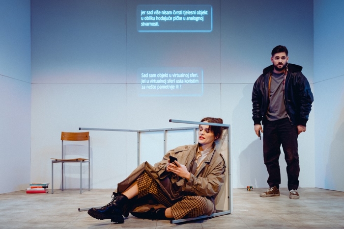 Scena 55 splitskoga HNK odavna je poznata kao mjesto najintimnijeg susreta publike i kreatora predstave. Prosinačkom premijerom Bolne djece u cvijeću, nagrađenog dramskog teksta Antonele Tošić (druga nagrada Marin Držić za 2023.) u režiji Vinka Radovčića, oživjela je, po tko zna koji put, iznimnom sinergijom glumačkog dvojca i emotivno involviranih gledatelja. Ono što su Rea Bušić i Pere Eranović suživljeno i sugestivno odigrali na jednostavno osmišljenoj pozornici, kojoj u pozadini konstantno bljeska prozorčić inboxa mobitela, aktualni je trenutak današnjeg načina života mlađe generacije: riječ je, naime, o prikazu virtualne komunikacije između dvoje mladih, najpopularnijem modusu društvenih interakcija digitalne ere.