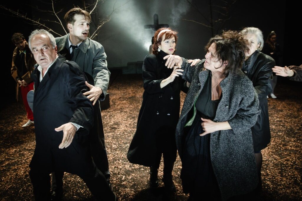 Glumački ansambl predvodi Klara Fiolić kao Nada, koja se uvjerljivo snašla u kompleksnoj ulozi djevojke odrasle u učmaloj sredini iz koje se želi izbaviti, ali koja je u tom izbavljenju spremna na čvrstinu i zauzimanje stava. Fiolić uspijeva i završna transformacija, kada u bijeloj haljini postaje mukli simbol vlastite tragedije. Treba istaknuti i Marinka Leša koji kao Špiler, liječnik i silovatelj, uspijeva u dočaravanju tanke granice pokvarene zavodljivosti i dijaboličnih nagona. Niz ostalih glumaca, među kojima su pamtljivije uloge ostvarili još Karlo Mrkša kao Pišta, Sunčana Zelenika Konjević kao Kata i Barbara Rocco kao Anka, uglavnom se snalazi u ispunjavanju funkcija koje su im dodijeljene tijekom dramske radnje. Za istaknuti je i, ma koliko se to očekivalo od ansambla djelujućeg u kazalištu kojem je kajkavski jedna od bitnih odrednica repertoara, kako je jezični supstrat zagorske kajkavštine uspješno iznesen na scenu, za što je, uz glumce, zasigurno zaslužna i jezična savjetnica Ines Carović.