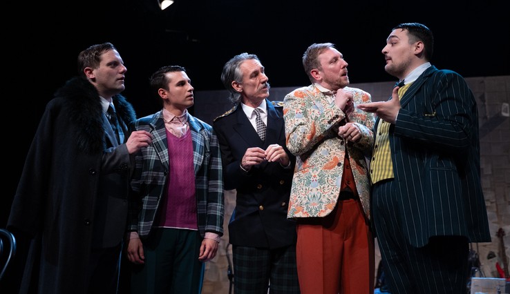 A prosci su, pomalo karikaturalno, ali s mjerom kostimirani (kostimografkinja Barbara Bourek uvijek na estetski visokoj razini i funkcionalno kreira kostime, vodeći računa o svakome detalju, krojevima, usklađenosti boja, teksturi, vremenu, ulogama i osobnosti glumaca), kao pravi obrasci za lijenost, glupost, sebičnost, lakoumnost i korupciju: Kajgana, egzekutor, Domagoj Ivanković, koji je nepotrebno glumački ušao u maniru potpomognutu tjelesnim izgledom, Anučkin, bivši pješadijski oficir, pouzdani Josip Brakus, Ževakin, a umirovljeni je mornarički pukovnik Dražen Čuček, koji uvijek osmisli zanimljivu i potpuno razrađenu kazališnu minijaturu držeći se do kraja zadane osobnosti (valjda je zato što mu je puno ime Baltazar Baltazarovič Ževakin iz Dubrovnika, sa svim asocijacijama koje netko izvan Grada može imati na Grad).