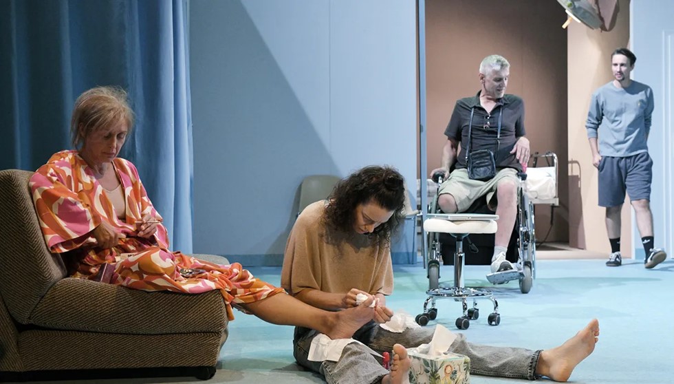 Helena Peršuh i Radoš Bolčina maestralno utjelovljuju pripadnike treće životne dobi, pomirene sa životom i oslobođene svih obmana i lažnih nadanja. Zdravi nihilizam i samoironija obrambeni su štit njihova polagana svakodnevna umiranja u kojem više nema mjesta za neke restrikcije (Evina majka uživa u cigaretama i nezdravoj hrani) i veća odricanja. Moglo bi se reći kako idu za onom maksimom Majakovskoga: „Treba otimati radost danima što bježe.“ Autentičnom kostimografijom podcrtane su njihove karakteristične staračke reakcije i ležerno držanje unatoč lošim liječničkim predviđanjima oko njihovih dijagnoza. Njihov optimizam u srazu je s Evinim i Danijelovim nagomilanim pesimizmom koji povremeno razbije uvijek dobro raspoloženi doktor s klinike za liječenje neplodnosti, naoružan za struku, u kojoj mu pacijenti dolaze brzinom pokretne trake, smiješkom i zadovoljnim fućkanjem.