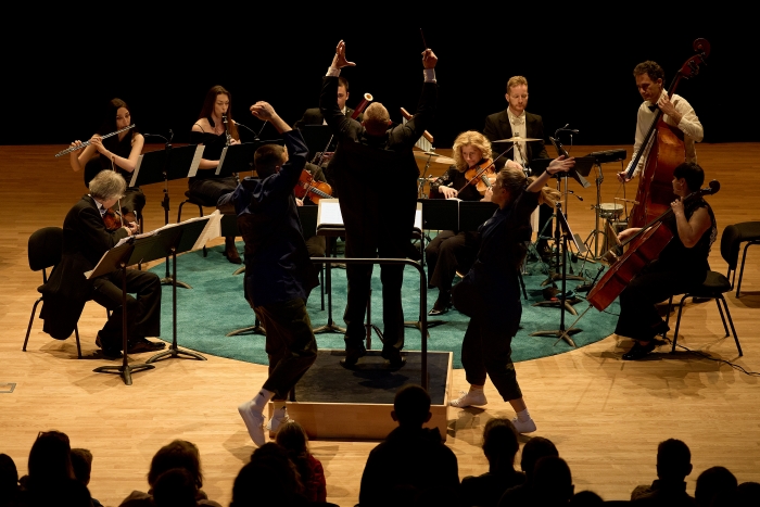 Nakon urnebesne igre na sceni, predstava ne završava spuštanjem zastora, nego se nastavlja u duhu interaktivnosti. Djeca su pozvana na pozornicu isprobati instrumente, postavljati pitanja, družiti se s glazbenicima. Ovaj segment bio je možda i najvrjedniji dio – spontan, radostan i pun uzbuđenja. U trenu je nastala kakofonija veselja, sviranja, smijeha i uzbuđenja. Glazbenici su pokazali zavidnu razinu strpljenja i topline, a djeca nisu propustila priliku sve dodirnuti, zasvirati i zapitkivati. Svako je dijete postalo dijelom prelijepoga i neobičnoga glazbenoga svijeta. Ipak, i ovdje se činilo da nedostaje određene strukture – sadržaj se prepuštao isključivo dječjoj spontanosti.Publiku su činile čitave obitelji – roditelji, bake i djedovi, starija i mlađa braća i sestre. Atmosfera je bila topla, neopterećujuća i prijateljska, a djeca su iz dvorane izlazila s osmijehom, neki, vjerujem, i sa snažnijim interesom za glazbu.