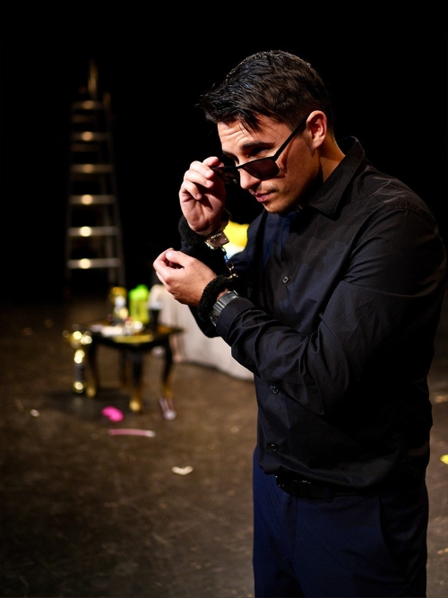 Filip Detelić / Koks, na romobilu se dovezao kroz gledalište, preko majice odjenuvši ružičasti grudnjak. Još jedna pomaknuta situacija i prizor koji na prvu nasmijava. I ovakav ulazak donosi određenu energiju i moment iznenađenja, ali i potvrđuje da se predstava više oslanja na fizički geg i vizualne dosjetke nego na jasno strukturiranu (kazališnu) ideju, kao da jedino na što računaju jest trenutačna reakcija publike.