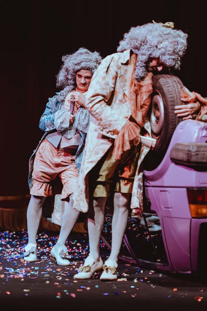 Od sama početka predstave razvidno je kako je Lolić upravo u glumačkim pojavama lucidno uvidio i njezin najveći kapital kojemu upečatljivo kostimografsko ruho pomaže tek dodatno zablistati. A upravo se to može i ustvrditi za cio glumački ansambl koji je nadasve bio vođen intrinzičnom motivacijom: osjetiti bilo tipičnih protagonista, udarati po paradoksima njihova ponašanja i manjkavostima karaktera. Plesnim pokretima, tjelesnom ekspresijom i vitalnim dijalozima glumci uspješno nadoknađuju manjak dramskoga prostora (zamišljeni francuski dvor, plesne dvorane, 17-stoljetne diližanse i aristokratske menze) koji je u konačnici i smišljeno kondenziran na puko otvaranje i zatvaranje automobilskih vrata, iz kojih uvijek simptomatično glasno izlaze protagonisti, kako bi pratilo i nagoviještalo razvoj dramske radnje iz prizora u prizor.